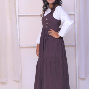 This dreamy gown, with its delicate bell sleeves and intricate detailing, radiates femininity and charm. Perfect for those who love a blend of comfort and sophistication.